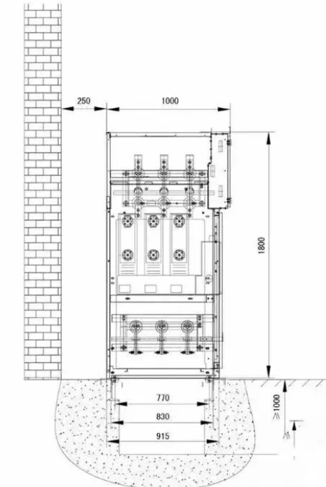 安裝時按環(huán)網(wǎng)柜先后順序排列在地基的槽鋼上,將柜體靠緊,并用螺栓固定旋緊,柜面應(yīng)排列整齊,柜頂與屋頂?shù)木嚯x應(yīng)大于600mm。