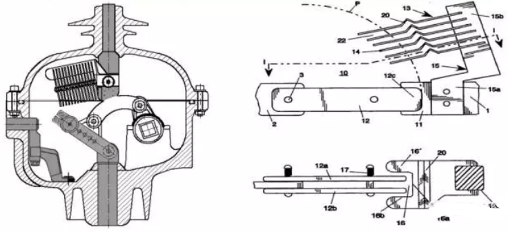 開關(guān)采用SF6氣體滅弧,分閘時,觸頭斷開瞬間產(chǎn)生電弧,每相觸頭上的滅弧柵把電弧拉長分段冷卻,至電流過零時熄滅。