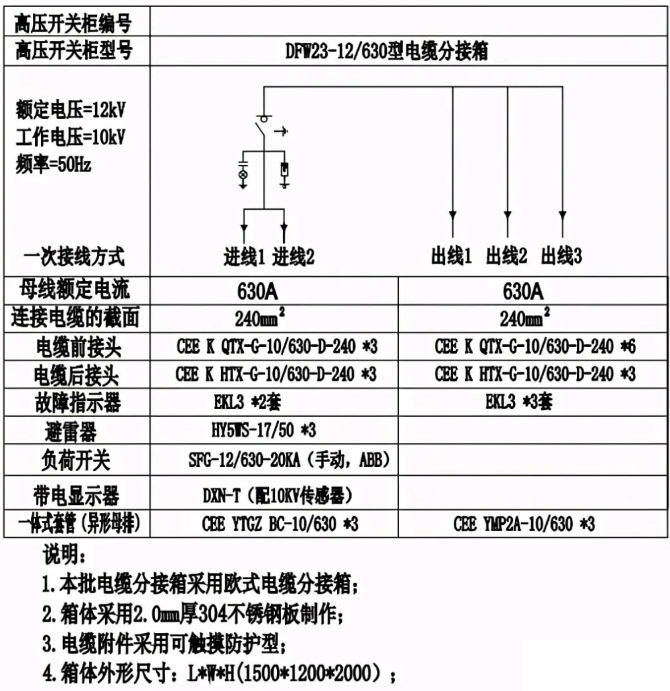 電纜分支箱用于非骨干回路的分支線路,作為結(jié)尾負(fù)荷接入用電使用,適用于中小客戶會(huì)集區(qū)域進(jìn)行負(fù)荷分接時(shí)的接入用電,不應(yīng)接入骨干環(huán)網(wǎng)及聯(lián)絡(luò)。電纜分支箱選用電纜進(jìn)線1回,出線2回或4回,出線回路數(shù)可根據(jù)使用需要選用,額定電流為630A。選用全絕緣、全封閉、全屏蔽可觸摸式結(jié)構(gòu),以及采納防凝露、防內(nèi)部毛病電弧外泄等措施。