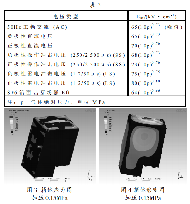 環(huán)網(wǎng)柜殼體形狀不同有箱式和筒式之分。由于箱式結(jié)構(gòu)有利于實現(xiàn)進出線.配電方案的實施,但是箱式在承受壓力的局限性,使箱體不能夠承受太高的壓力。下面介紹一種環(huán)網(wǎng)柜氣箱的設計方法。與氣箱設計有關的環(huán)網(wǎng)柜額定參數(shù)見表1。