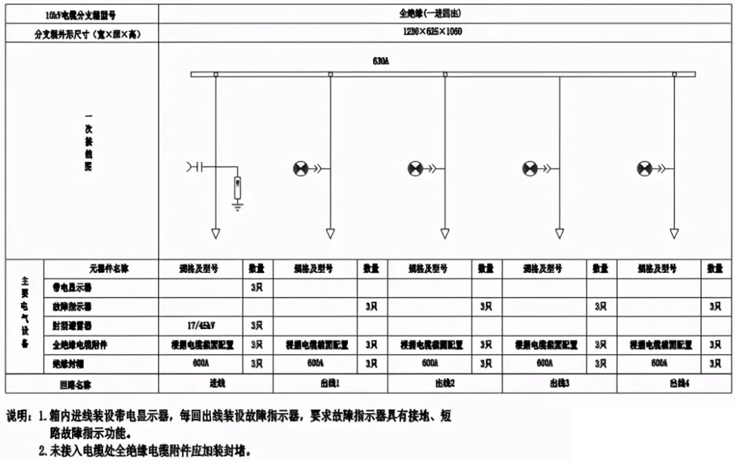 電纜分支箱用于非骨干回路的分支線路,作為結(jié)尾負(fù)荷接入用電使用,適用于中小客戶會(huì)集區(qū)域進(jìn)行負(fù)荷分接時(shí)的接入用電,不應(yīng)接入骨干環(huán)網(wǎng)及聯(lián)絡(luò)。電纜分支箱選用電纜進(jìn)線1回,出線2回或4回,出線回路數(shù)可根據(jù)使用需要選用,額定電流為630A。選用全絕緣、全封閉、全屏蔽可觸摸式結(jié)構(gòu),以及采納防凝露、防內(nèi)部毛病電弧外泄等措施。