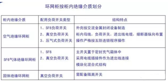 按絕緣結構分:空氣絕緣、復合絕緣、SF6氣體絕緣、固體絕緣環(huán)網(wǎng)箱按產品設計結構分:歐式環(huán)網(wǎng)箱和美式環(huán)網(wǎng)箱