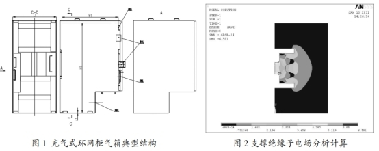 高壓帶電體對(duì)地最小空位處在支撐絕緣子上,經(jīng)過核算支撐絕緣子的電場(chǎng)如圖2,滿足電場(chǎng)請(qǐng)求,終究招認(rèn)對(duì)地最小空位。根據(jù)最小空位準(zhǔn)繩招認(rèn)氣箱外形標(biāo)準(zhǔn)(L1xW1xH1)。